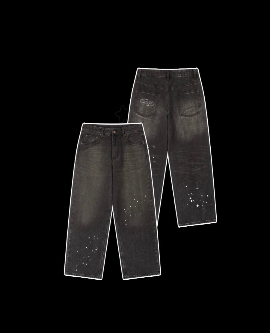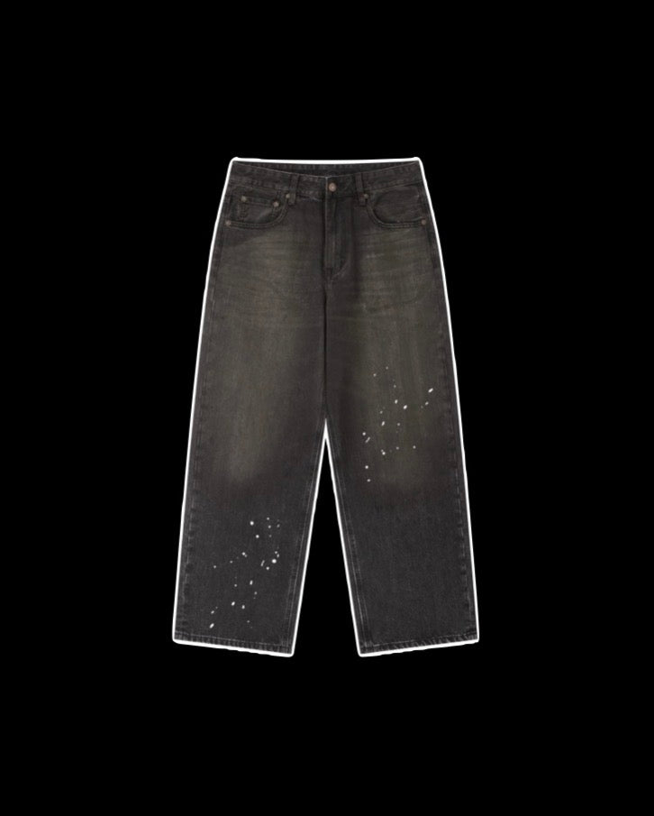 Make a bold statement with these black faded baggy jeans featuring a unique paint-spatter design. Crafted from durable denim with a relaxed, oversized fit, these jeans blend streetwear edge with creative flair.